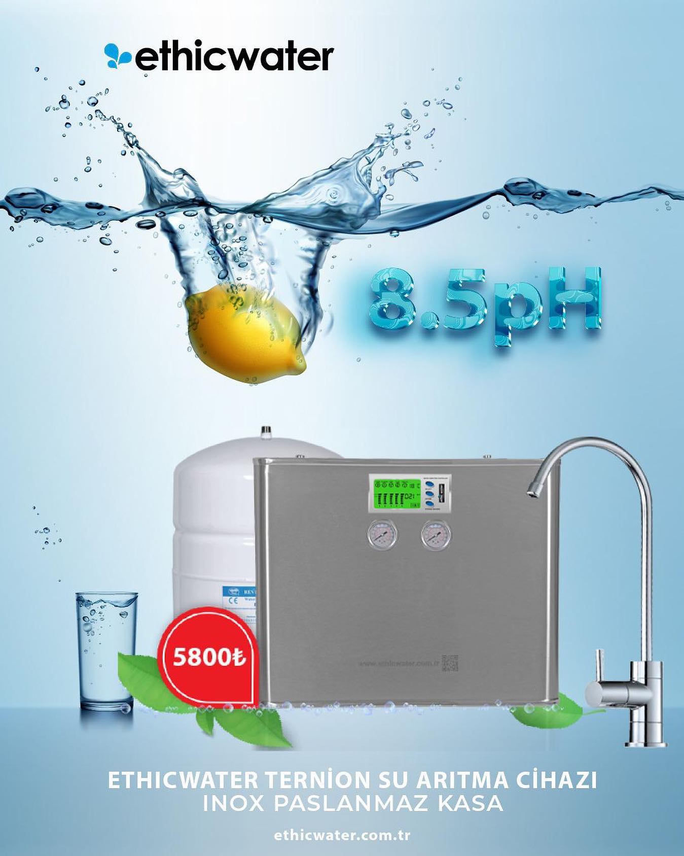 Ethicwater tamamen kaliteli ürün tasarımı ile müşterilerine yeni cihaz sunumu gerçekleştirmektedir. En iyi su arıtma cihazı sitemiz üzerinden satışa geçmektedir. Temiz ve berrak su tüketimi için evlerde su arıtma cihazına ihtiyaç duyulmaktadır. Klorlu ya da sert suların yanı sıra yumuşak ve tatlı su için en çok tercih edilen ürünlerden biri su arıtma cihazlarıdır. Kireçten arıtılmış şekilde su kullanılması her alanda avantaj sağlamaktadır. Özellikle banyo ve mutfaklarda kireç oluşumunu engellemek için su arıtma cihazları evin her bölümünde kullanılmaktadır.